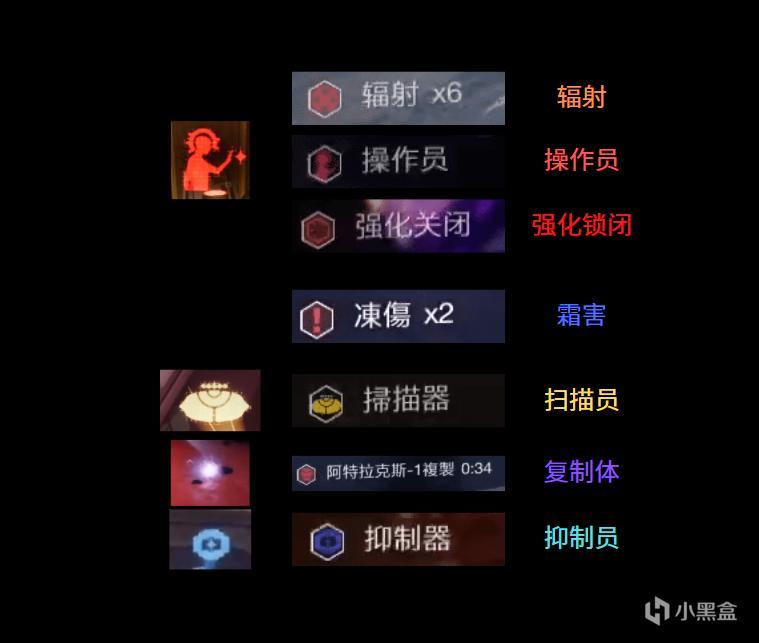 扫描员BUFF:从怪物身上掉落,拾取后可以从上透过玻璃看到下方正确的开关(正确的开关会发黄光),以及在输出阶段可以在下方看到正确的保险丝(正确的保险丝发黄光)