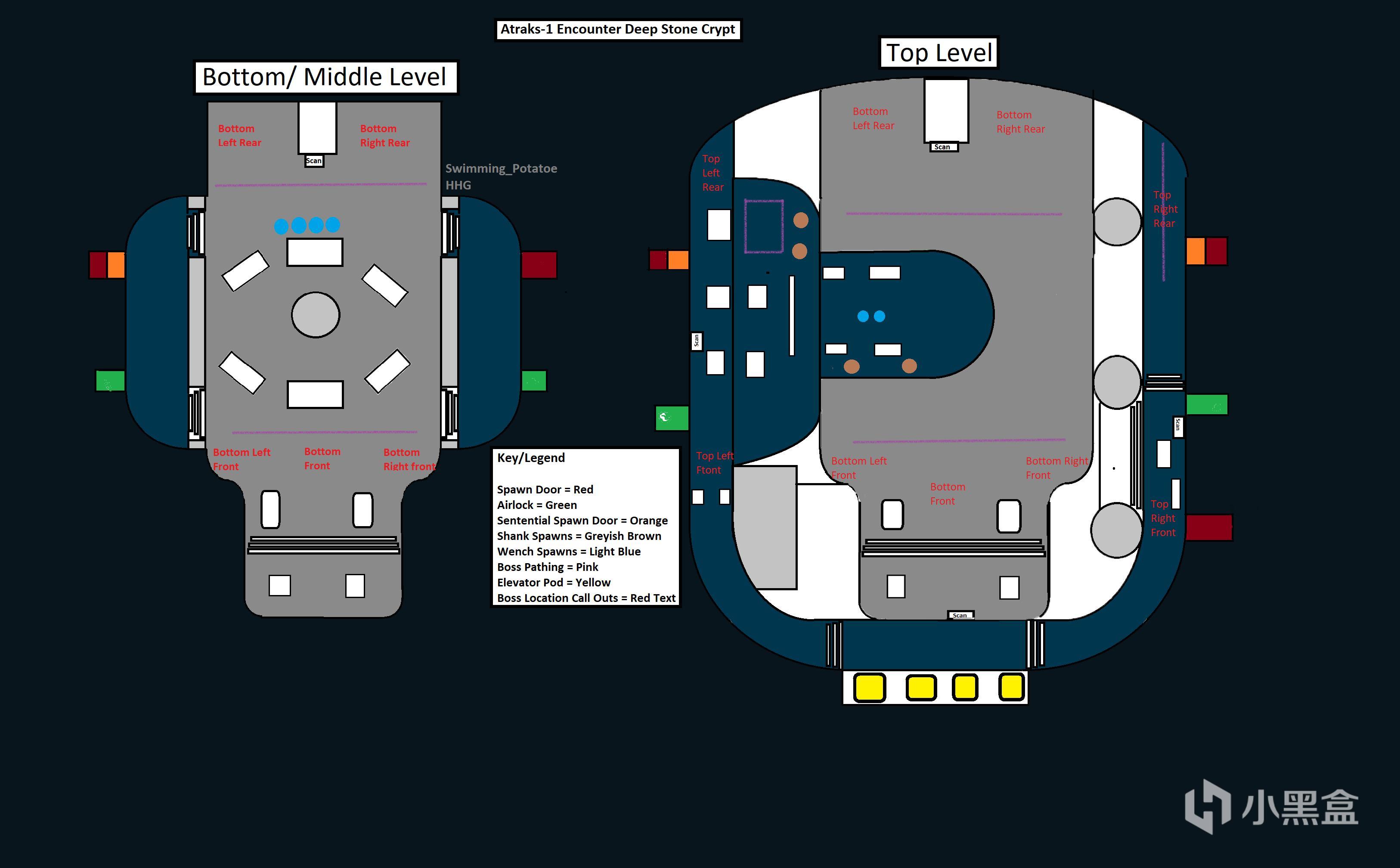 输出阶段同样建议给BOSS编号,这里提供一种参考编号办法,下方以出生点为原点将BOSS编为左中右,上方以传送仓为原点,将BOSS编为左上,中前,中后,右上。