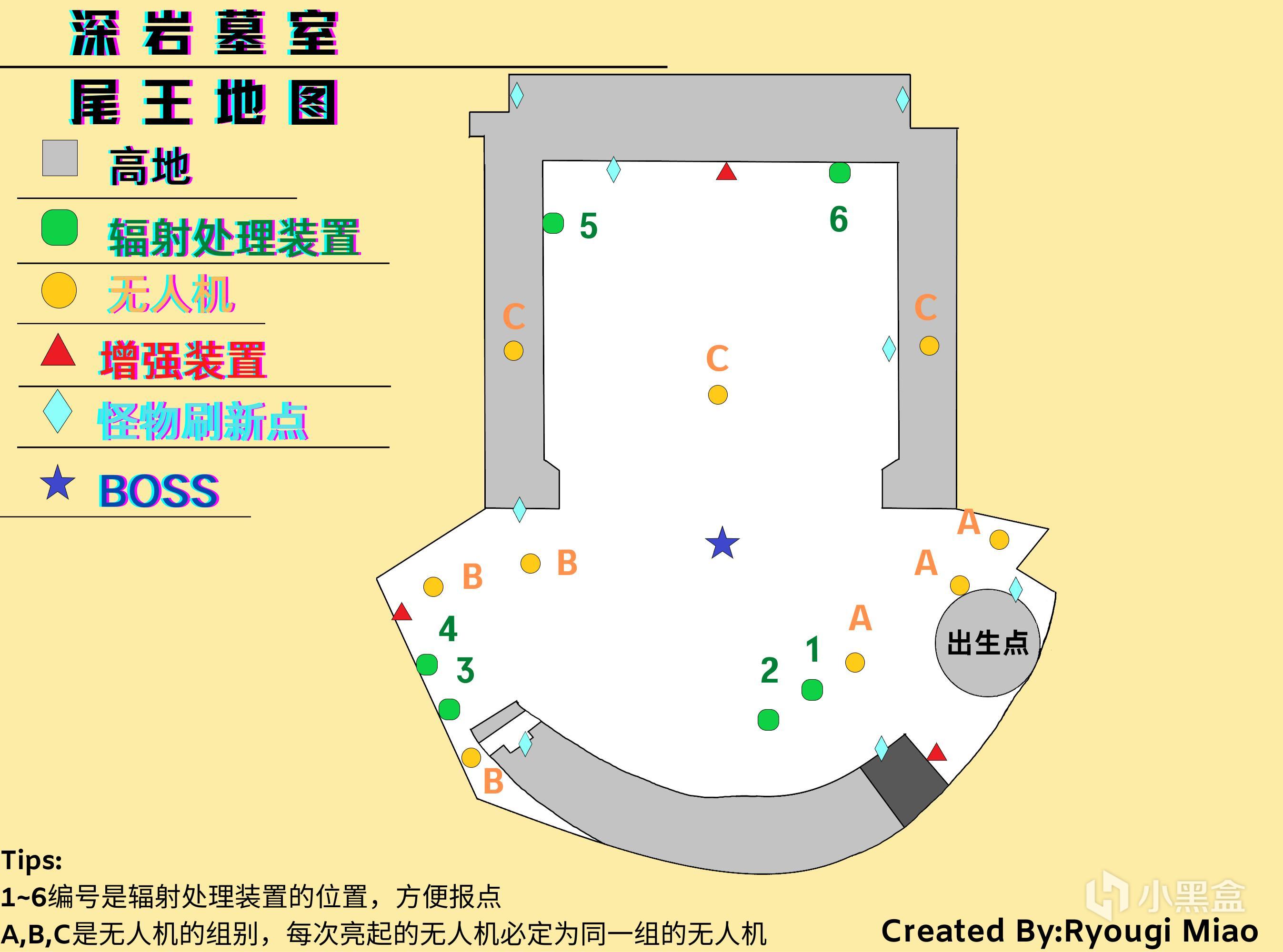 地图概览:本图共计6个辐射处理装置,9台无人机,3台增强终端。确保记住全部的辐射处置装置位置。